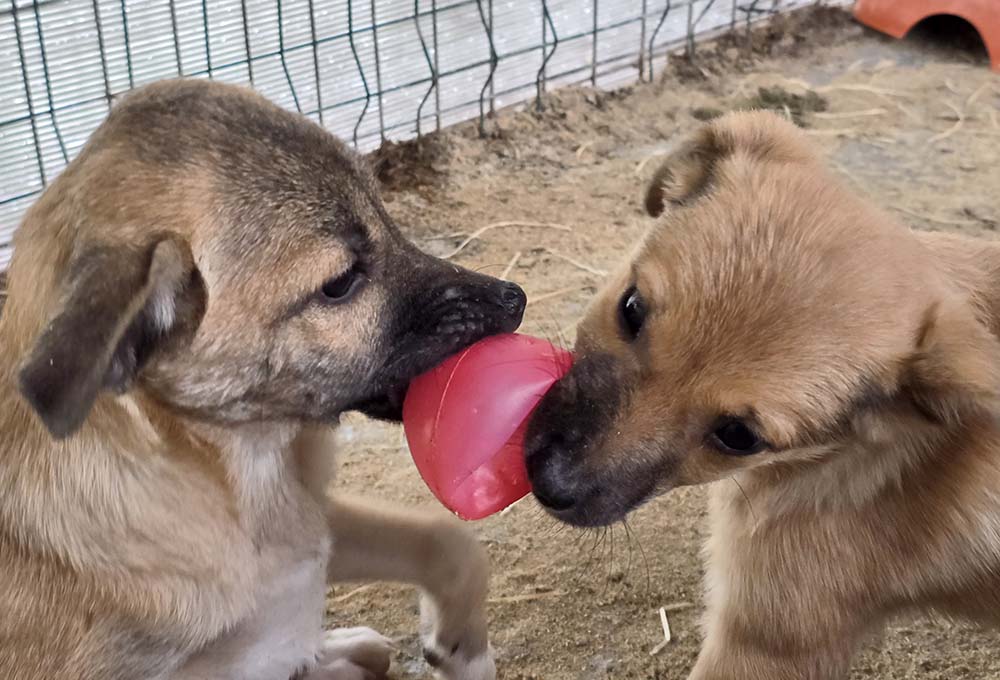 Half november 2025, de pups krijgen speeltjes en even aandacht: