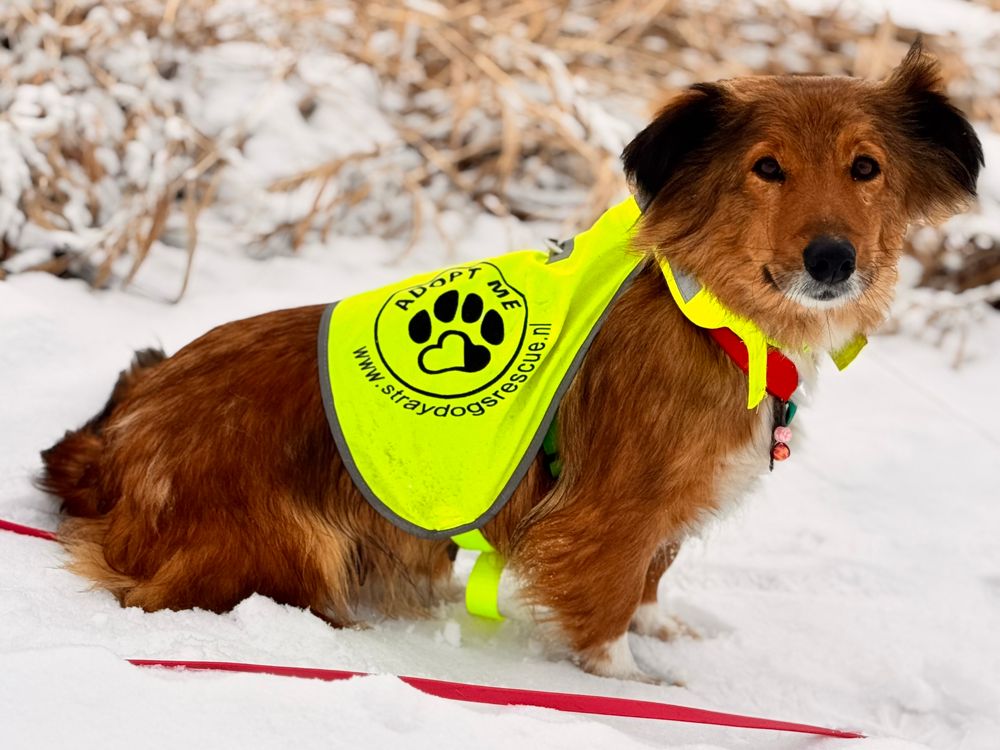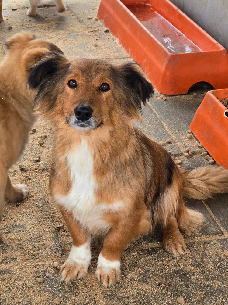 Met andere honden is ze zeer sociaal, soms daagt ze zelfs voorzichtig uit tot spel. Al met al een heel lief, zachtaardig hondje dat met veel geduld, rust en tijd een prachtig huisgenootje zou kunnen worden.