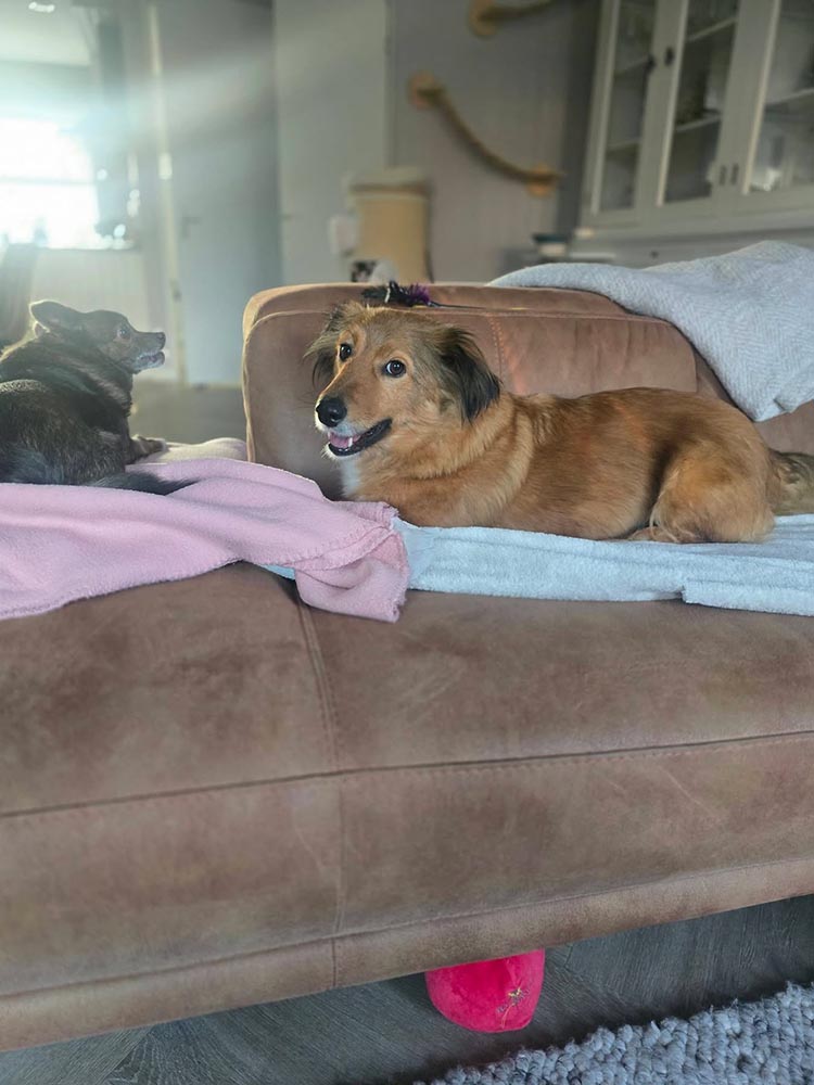 - We plaatsen Annie bij voorkeur in een thuis waar al een sociale hond aanwezig is, die voor Annie gezelschap is en het goede voorbeeld geeft in situaties die voor Annie nog spannend zijn. Plaatsing als enige hond is bespreekbaar, bij mensen met alle tijd en geduld en die weinig weg van huis zijn.