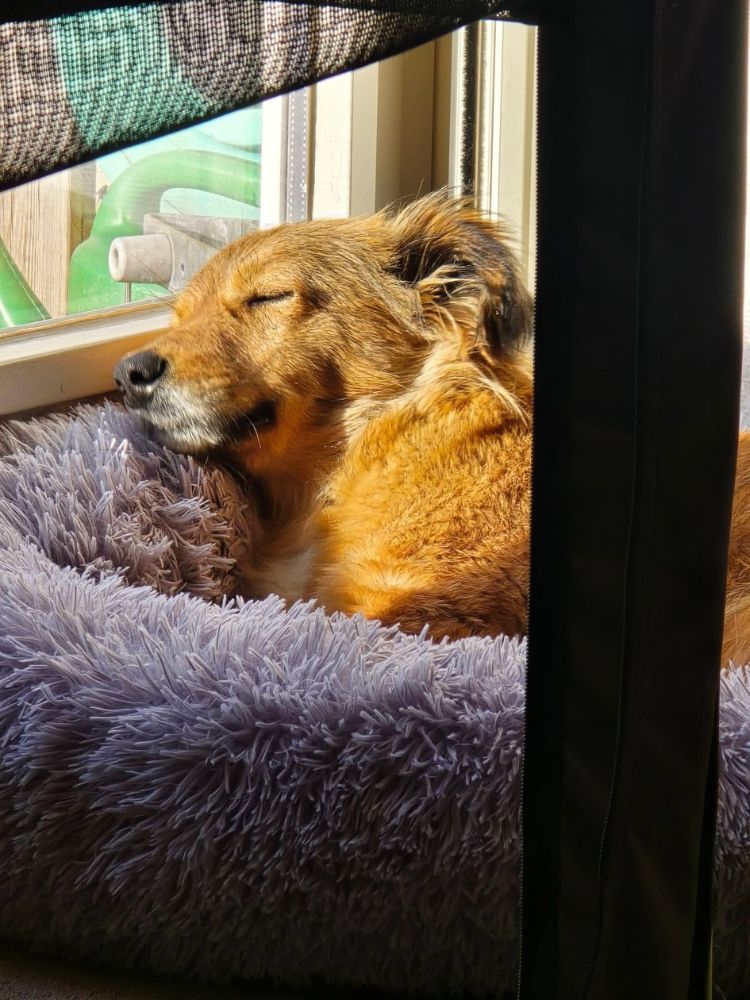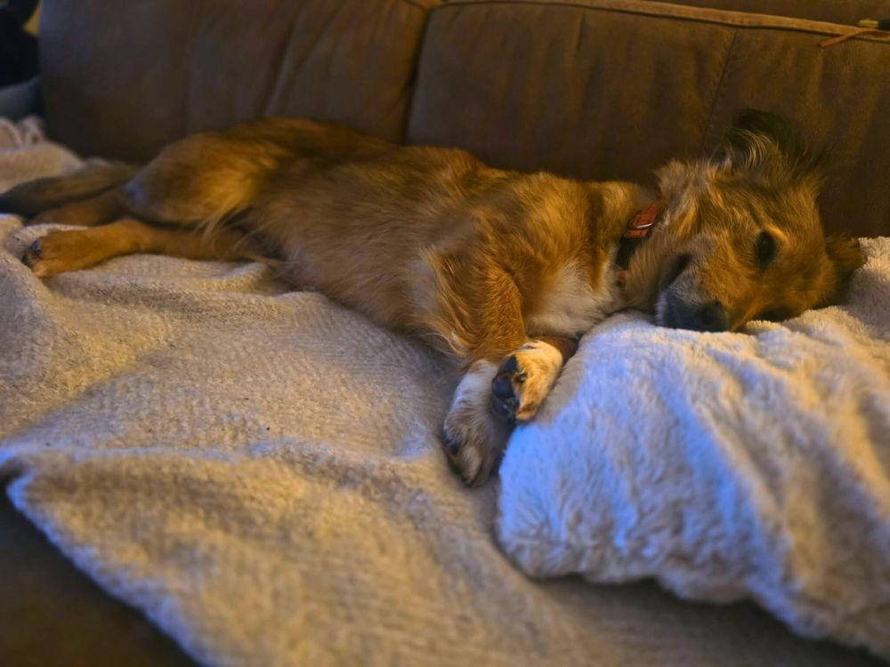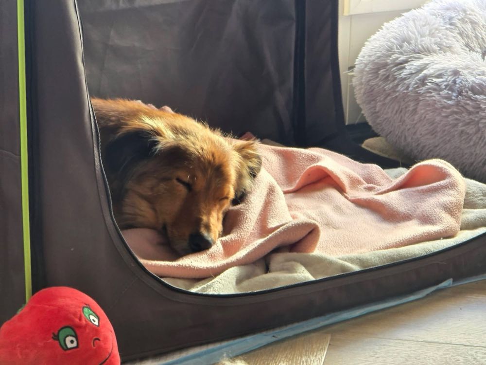 Annie is een rustig hondje dat houdt van een knuffeltje op zijn tijd maar niet opdringerig is. Ze slaapt nog erg veel; niet zo gek ook voor een hondje dat nog niet zo lang geleden in een totaal andere omgeving zat.