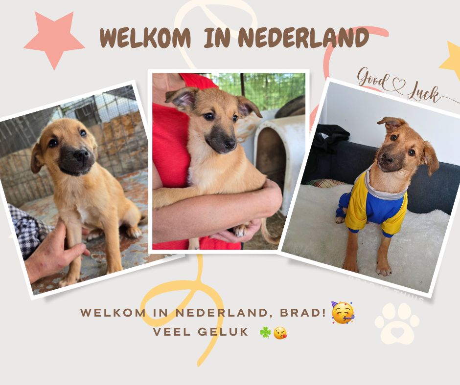 Als laatste van de 10 pups met wie hij gevonden is, mocht Brad op 19 december naar Nederland afreizen. Hij verblijft nu in een gastgezin in Groningen, stad.