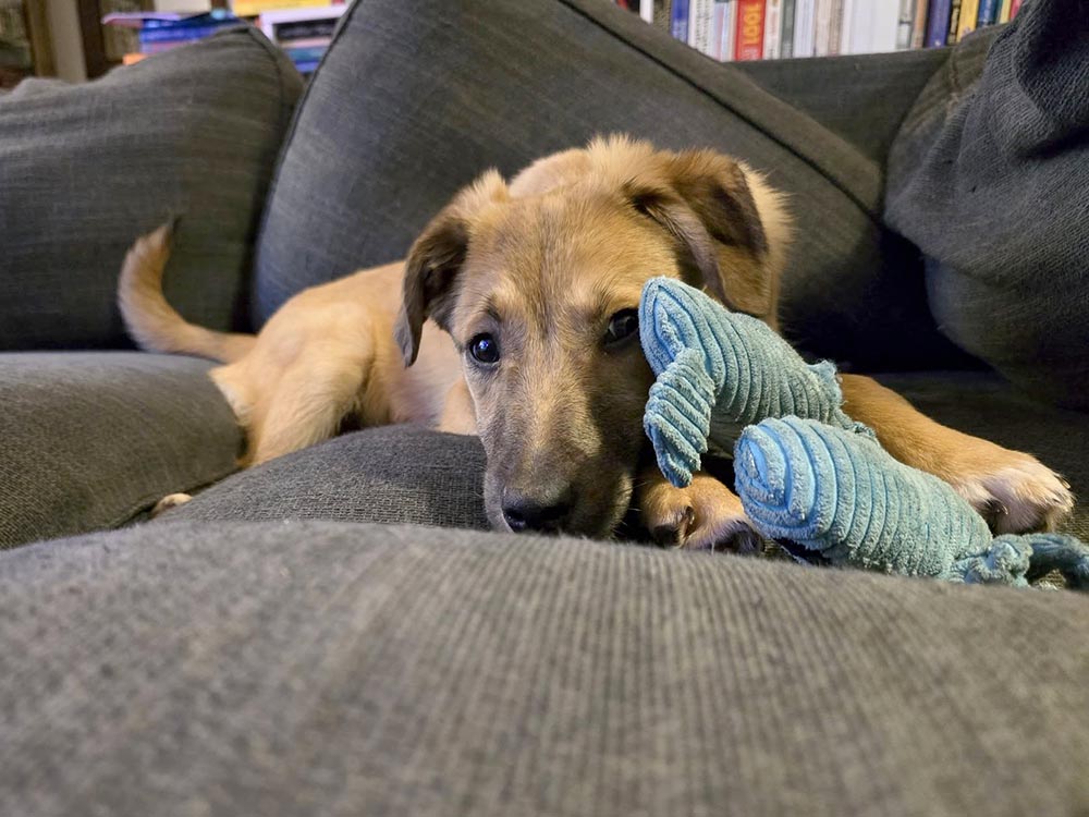 Half november 2025, de puppy kennel krijgt speelgoed en aandacht: