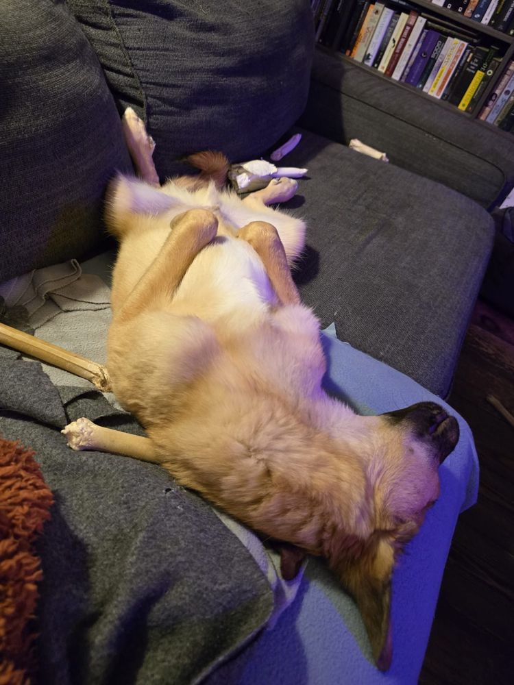 Nu ligt ie te knikkebollen tussen zijn buit. 😄❤️