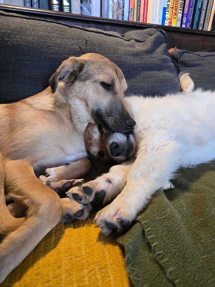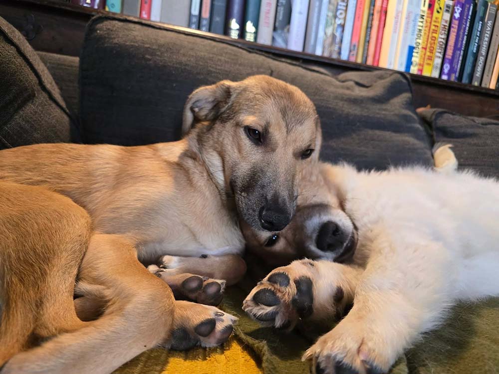 We denken dat de pups niet allemaal van deze ene mama hond zijn en het is gissen welke wel en welke niet... In oktober '24 hebben we Brad en de andere pups die samen met hem zijn gevonden, leren kennen - tijdens één van onze bezoeken aan het asiel.