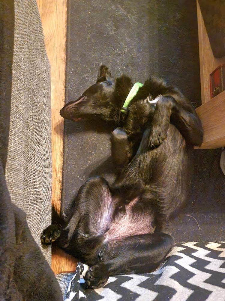 Carlos werd in januari samen met zijn moeder en nestgenootjes gevonden. Sindsdien verbleef hij in een privé opvang in Roemenië, wachtend op een gouden mandje. Helaas worden zwarte honden snel over het hoofd gezien... Maar gelukkig zag een van onze gastgezinnen hem wel staan en heeft hem de kans op een beter leven gegeven.