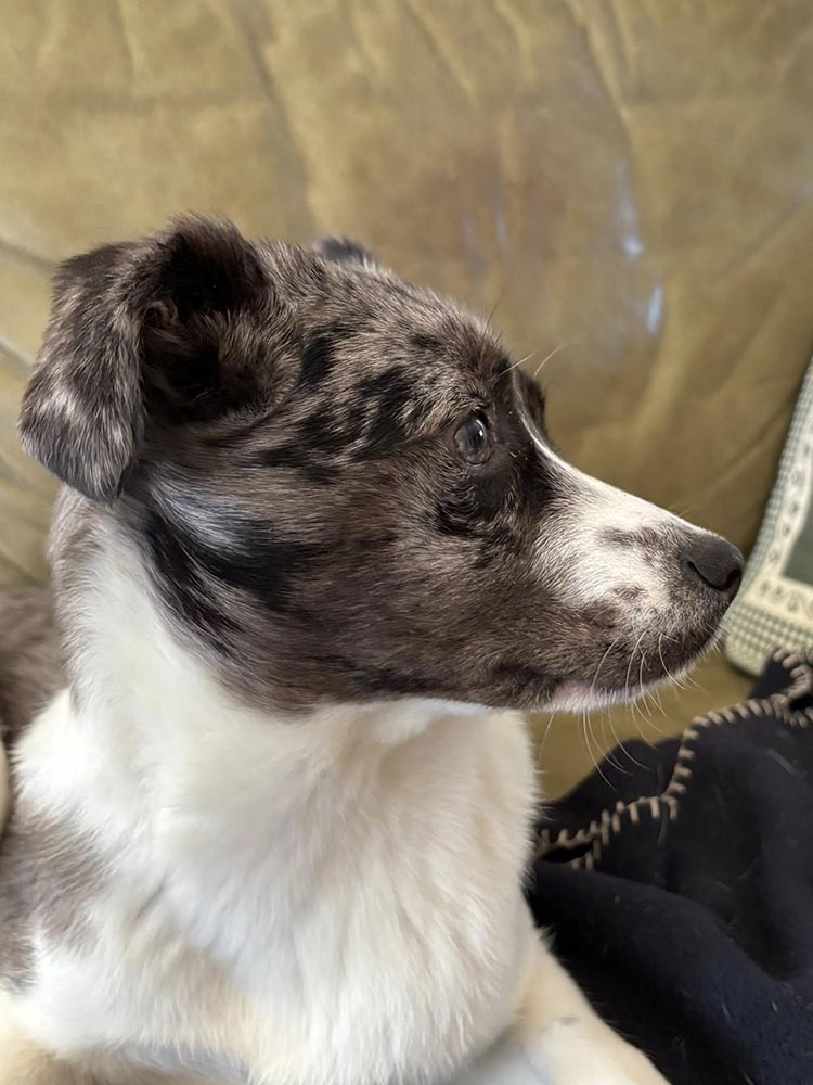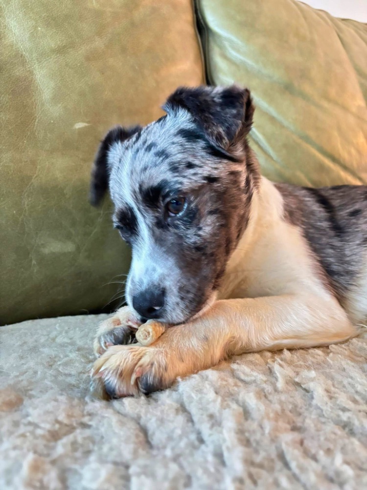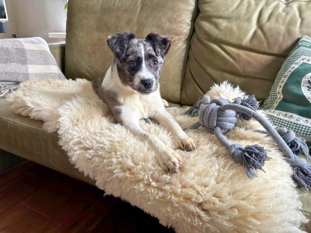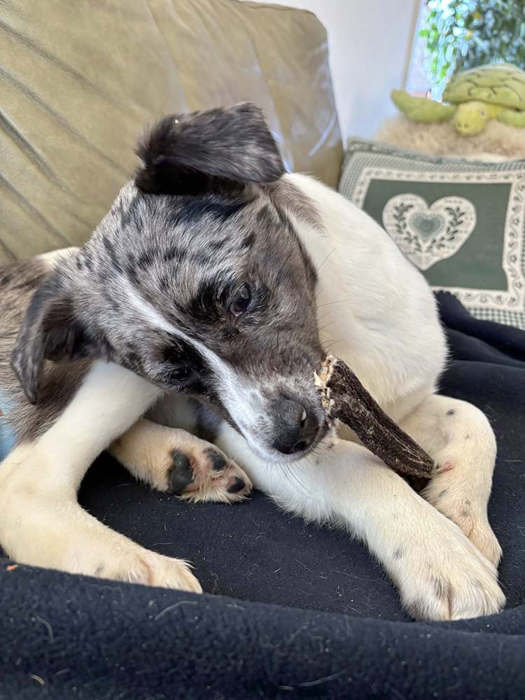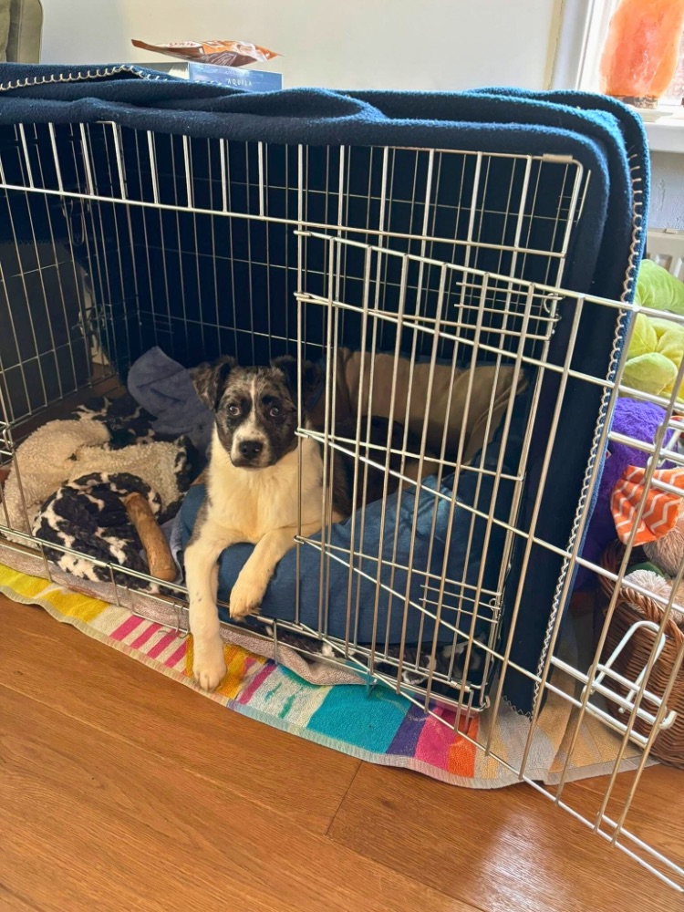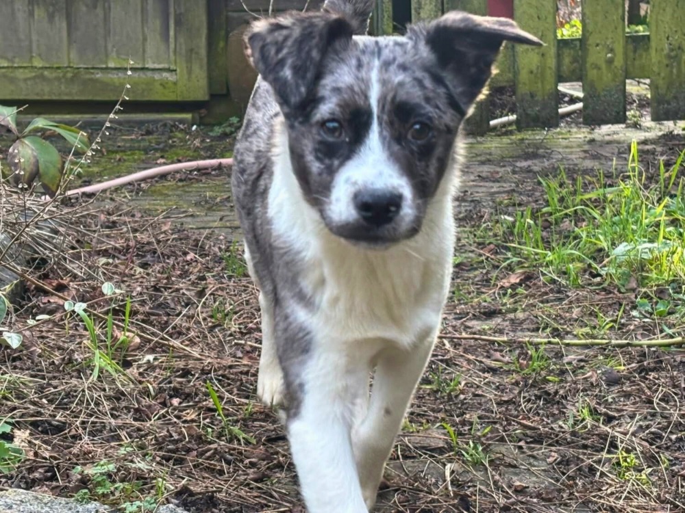 Indy is een vrolijke en onderzoekende pup. In Roemenië was ze naar onze teamleden toe nog wat afwachtend; bij haar gastgezin in Nederland geniet ze inmiddels van gekroeld worden.
