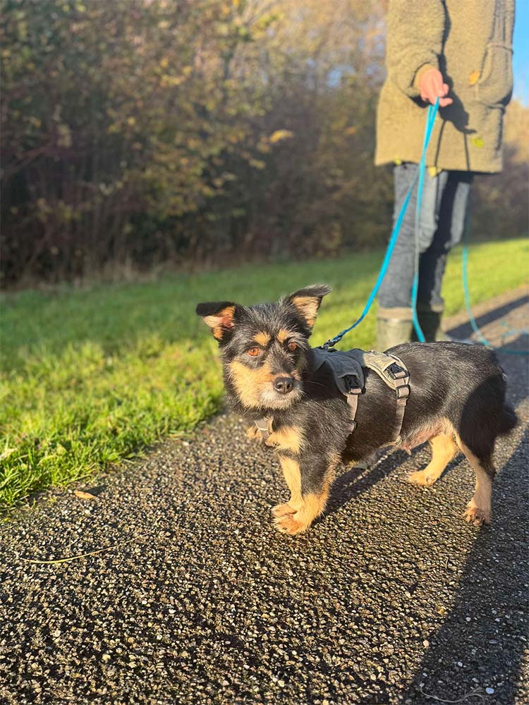 Jade aan de wandel bij het asiel in oktober 2025: