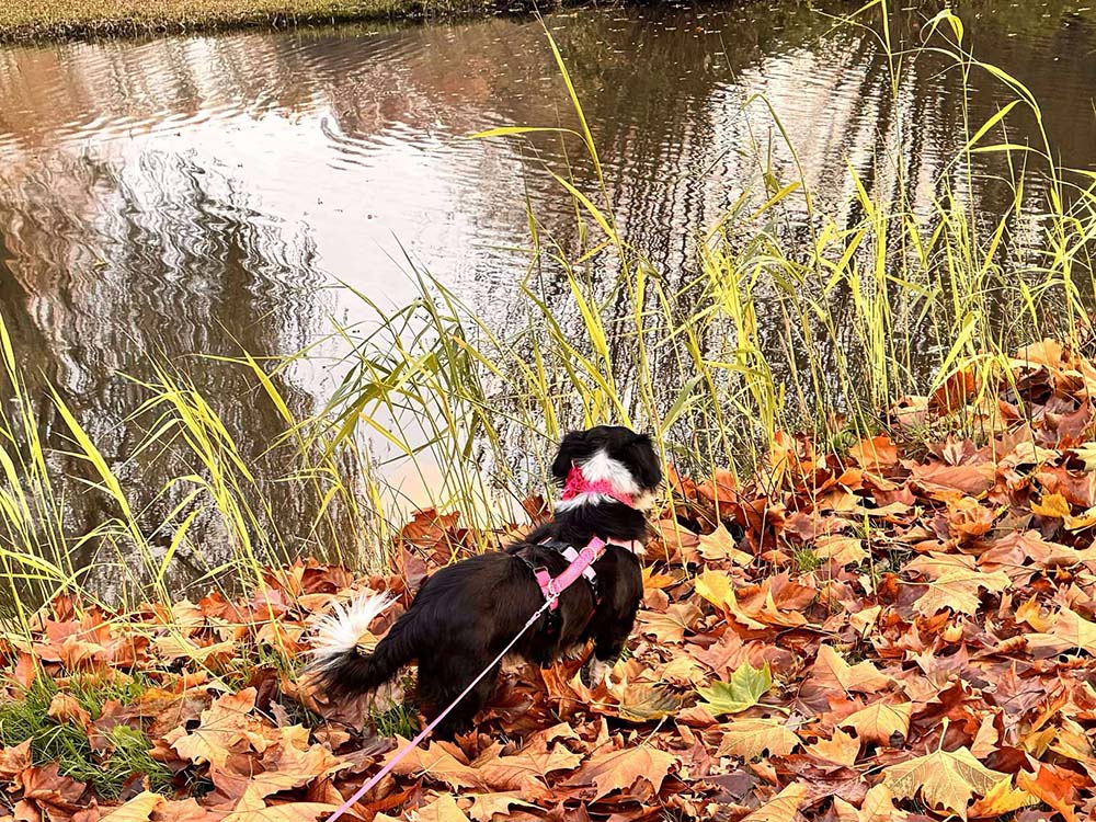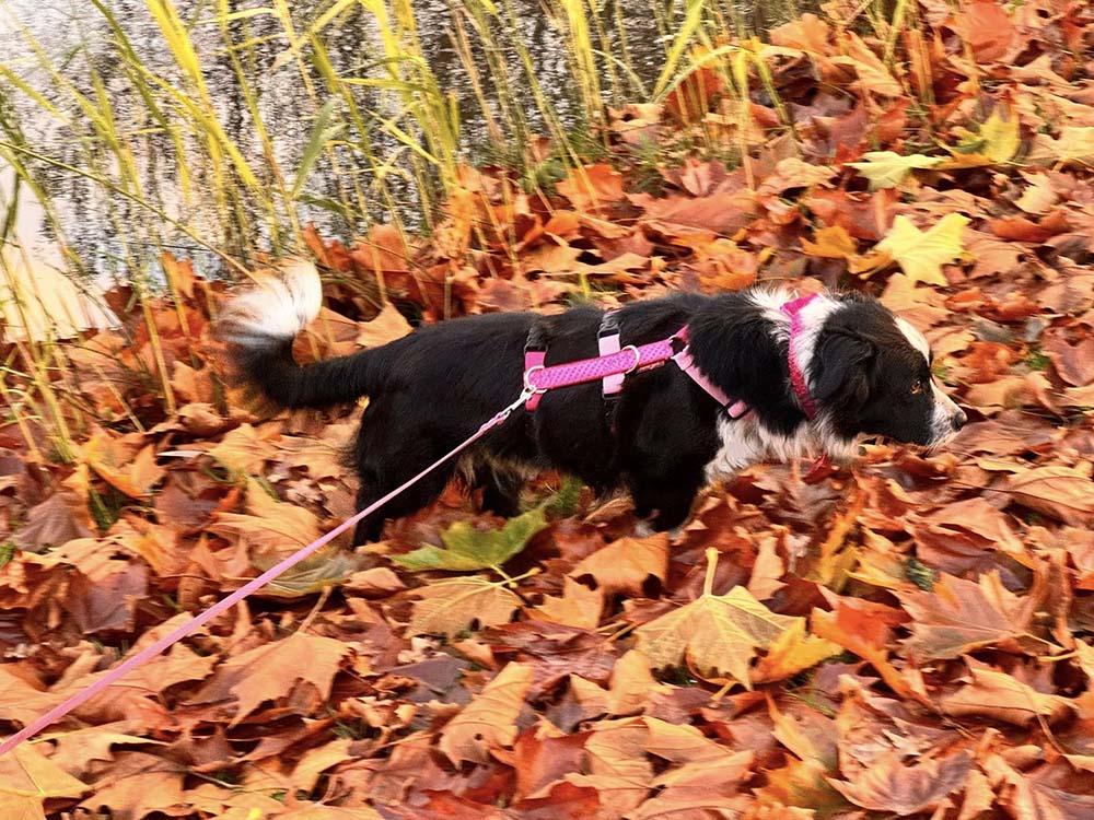 Een eerste wandeling zonder de andere hondjes, alleen met haar gastmoeder: