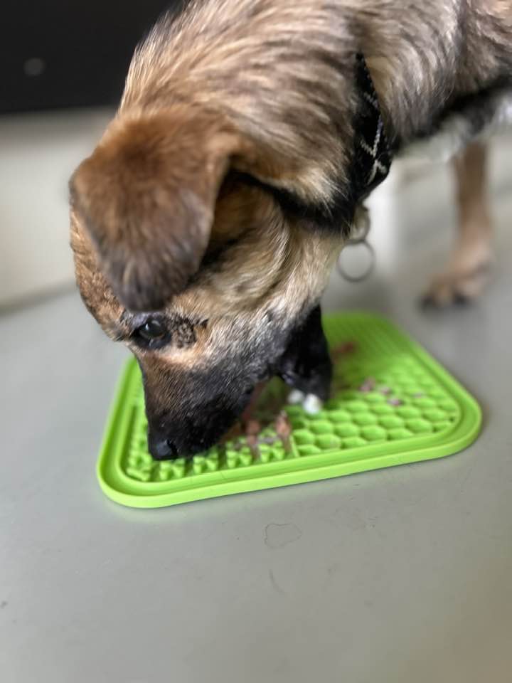 Jeremy is inmiddels zindelijk. Hij loopt vrij rond door de benedenverdieping en kan samen met de andere honden al even alleen zijn. Voernijd heeft hij niet; uit voorzichtigheid eet hij voorlopig in de bench.