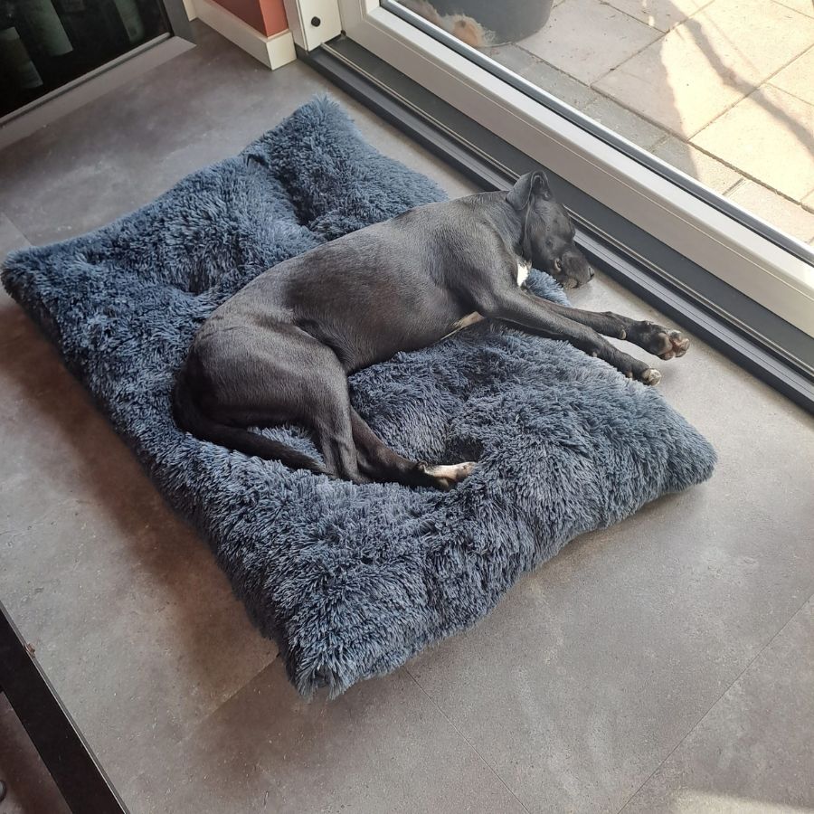 Linux is een fijne huisgenoot die haar energie goed kan afwisselen met rust. Ze speelt graag, maar kan ook heerlijk ontspannen slapen. Ze vermaakt zichzelf prima met snuffelen in de tuin of spelen met haar spullen. Wel heeft ze soms nog de neiging om losliggende spullen zoals schoenen of kussens te pakken; logisch voor een pup / jonge hond.