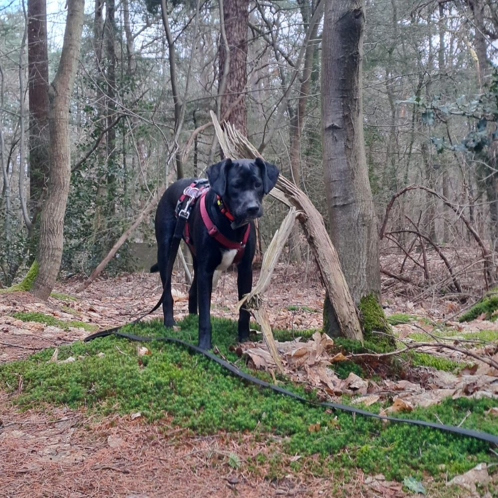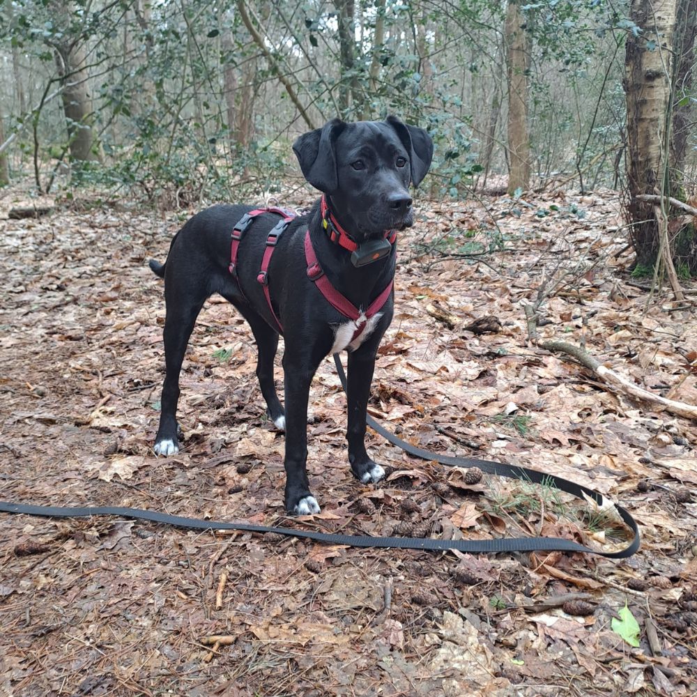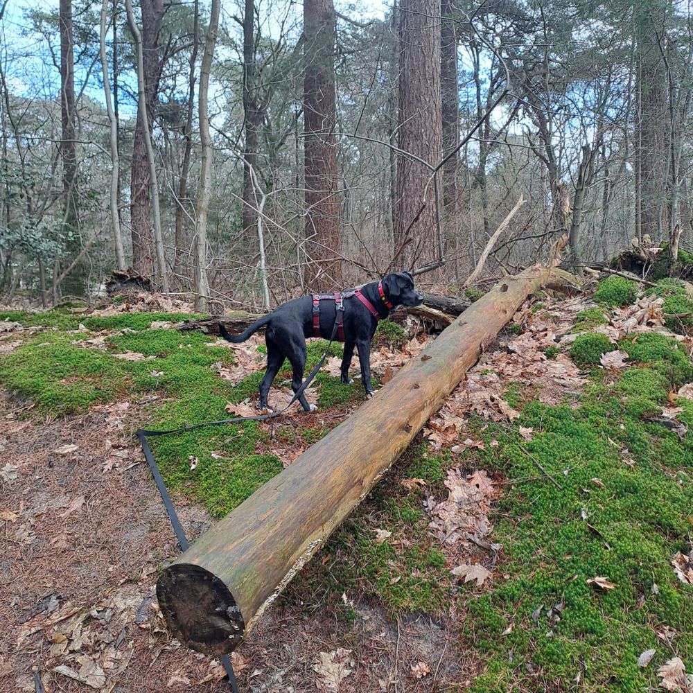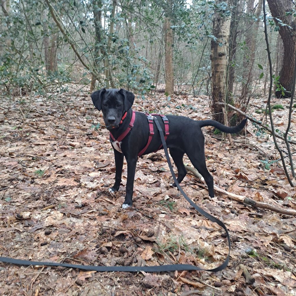 Buiten is Linux een nieuwsgierige en actieve hond. Aan de lijn loopt ze nog wat onstuimig en wisselt ze tempo en richting af, maar met begeleiding pakt ze dit goed op. In het bos loopt ze aan een lange lijn en geniet ze van lekker snuffelen en ontdekken.