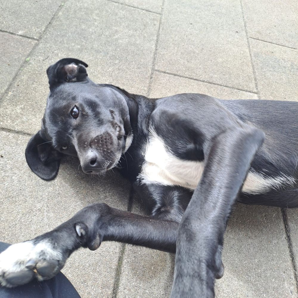 Linux is een vrolijke, energieke en speelse jonge hond met een groot hart voor haar mensen. Ze is aanhankelijk en geniet zichtbaar van knuffelmomenten op de bank, waarbij een buikmassage absoluut favoriet is. Ze is graag in de buurt van haar verzorger en houdt je goed in de gaten – mede doordat ze slechthorend is en veel op visuele prikkels vertrouwt.