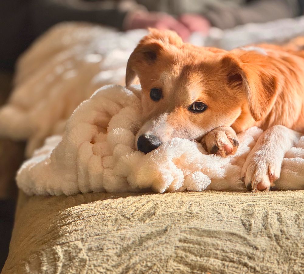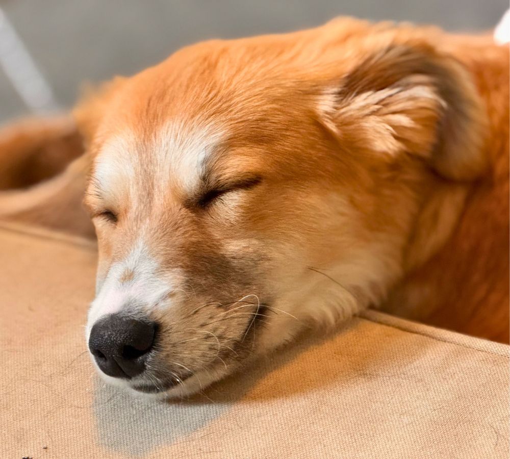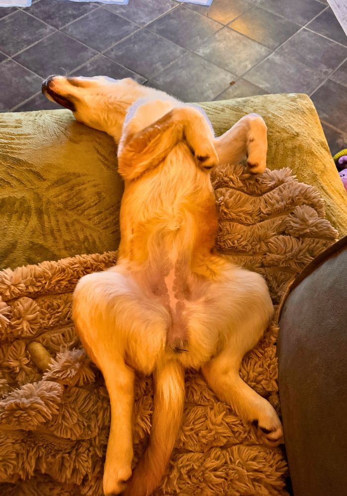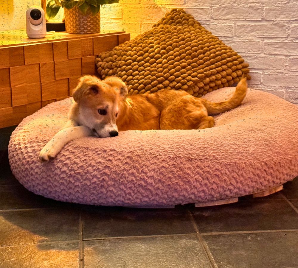 Met een goede balans tussen activiteit en rust en het gedoseerd aanbieden van nieuwe situaties is Maeyve in huis een hele tevreden pup. Ze gaat dan rustig ergens liggen om op een kauwstok te bijten en uiteindelijk in slaap te vallen om alle indrukken te verwerken.