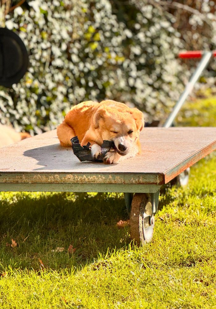 - Voorwaarde: Een goed omheinde tuin, zodat Maeyve ook op eigen terrein lekker buiten kan zijn, kan spelen en in het zonnetje kan liggen. De eerste tijd in een nieuw thuis is het bovendien belangrijk om eerst te wennen in huis en tuin, voordat er gewandeld gaat worden. Dat betekent dus ook dat het geen probleem mag zijn dat Maeyve haar behoefte in de tuin doet;