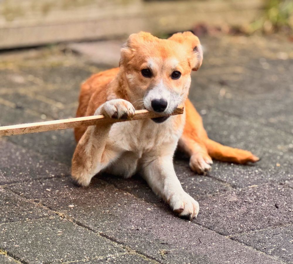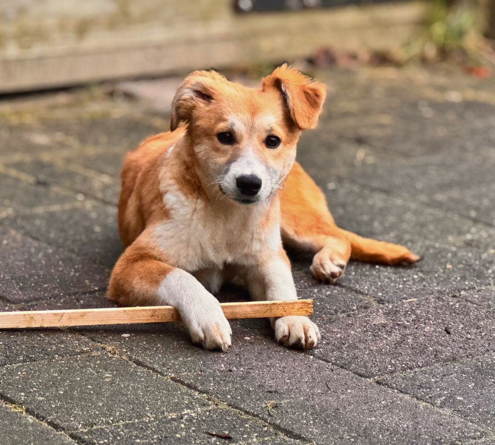 Maeyve is een ontzettend vrolijke pup met een onderzoekend en zacht karakter. Binnen een week was Maeyve volledig vertrouwd met de twee mensen in het opvanggezin en kan ze echt genieten van knuffels en aandacht.