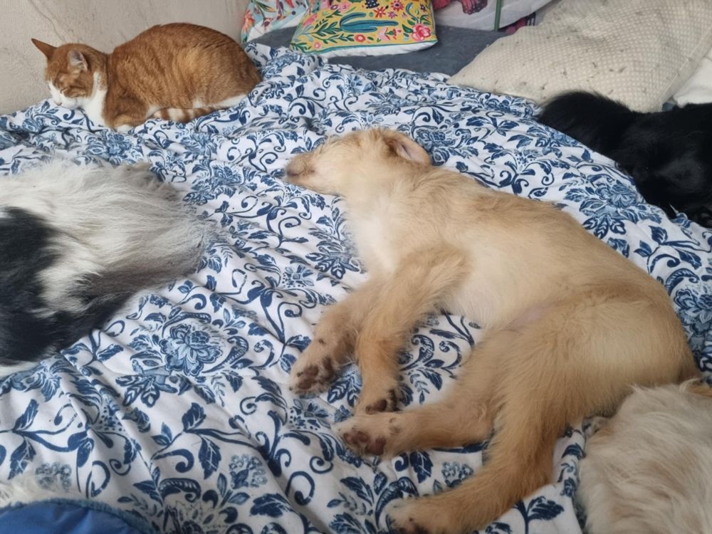 Met de andere honden en katten in het opvanggezin is hij beste maatjes. Samen spelen of samen slapen; Napoleon vindt hun nabijheid heel fijn! Zelfs tegen de kippen in de tuin is hij vriendelijk. Hoewel hij in een huishouden zonder andere dieren geplaatst zouden kunnen worden, denken we wel dat hij het gelukkigst wordt als zijn nieuwe gezin toch een of meerdere vierpotige huisgenootjes heeft.