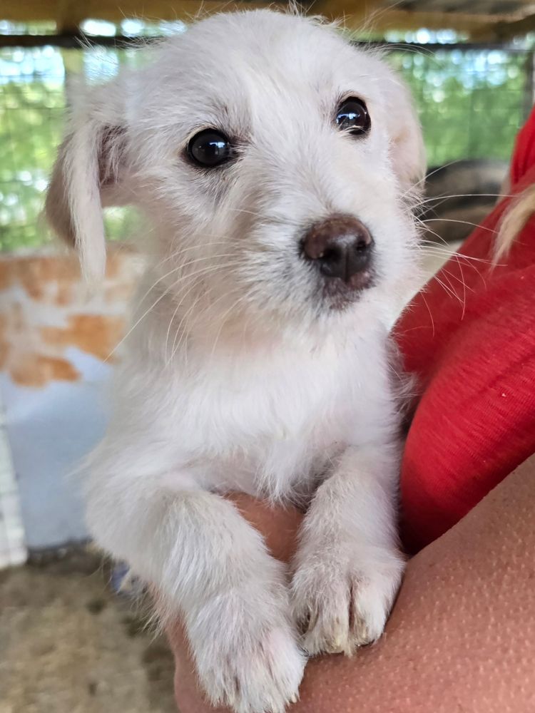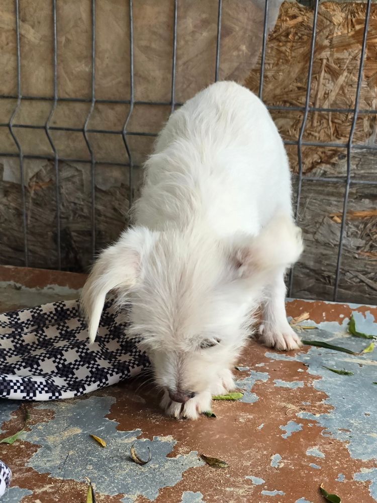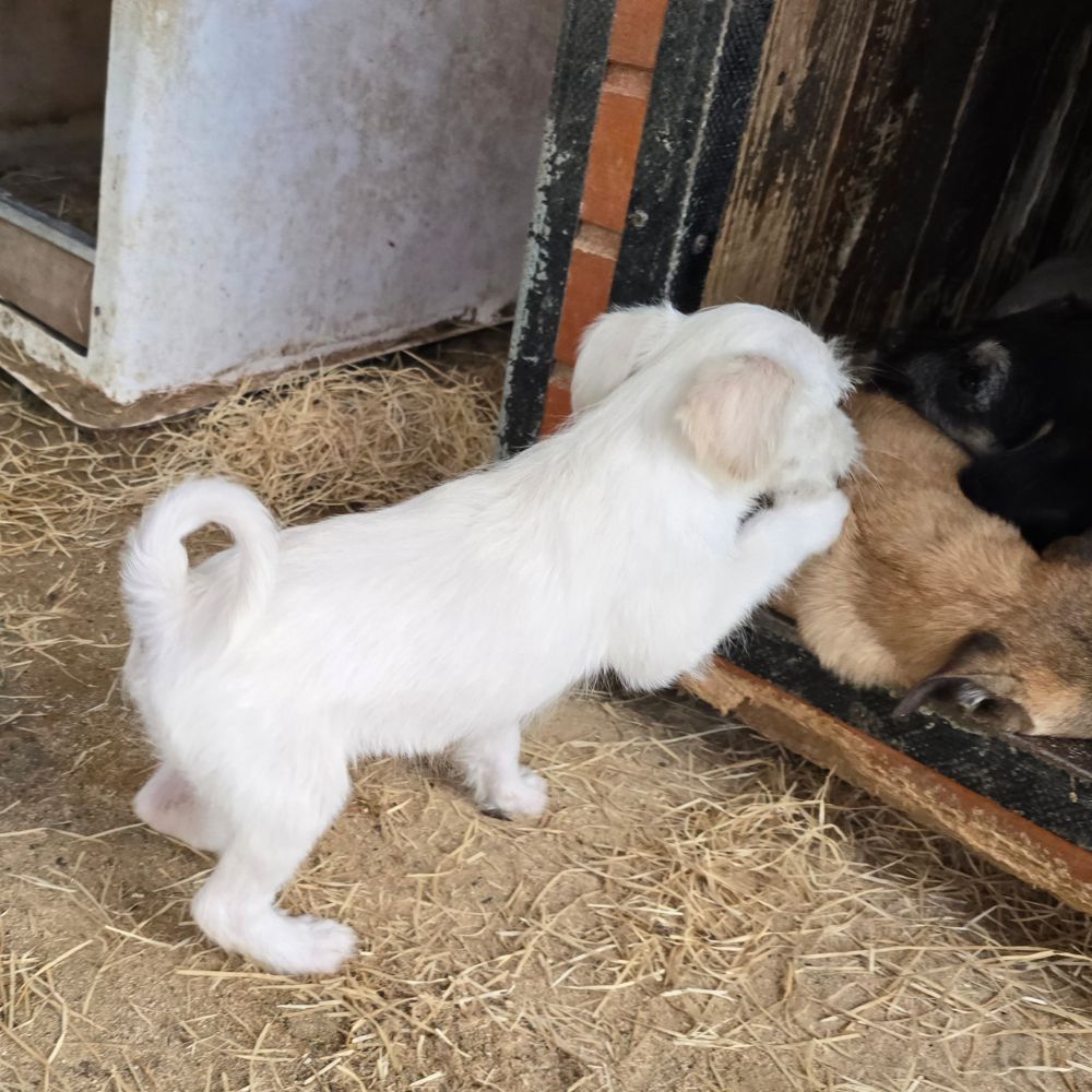 Ze is in het asiel gekomen nadat ze is gedumpt in het bos, samen met nog een heleboel andere pups en een zogend teefje. We weten vrij zeker dat deze groep pups bestaat uit meerdere nestjes, dus kunnen we helaas niet met zekerheid zeggen of het zogende teefje haar moeder is.
