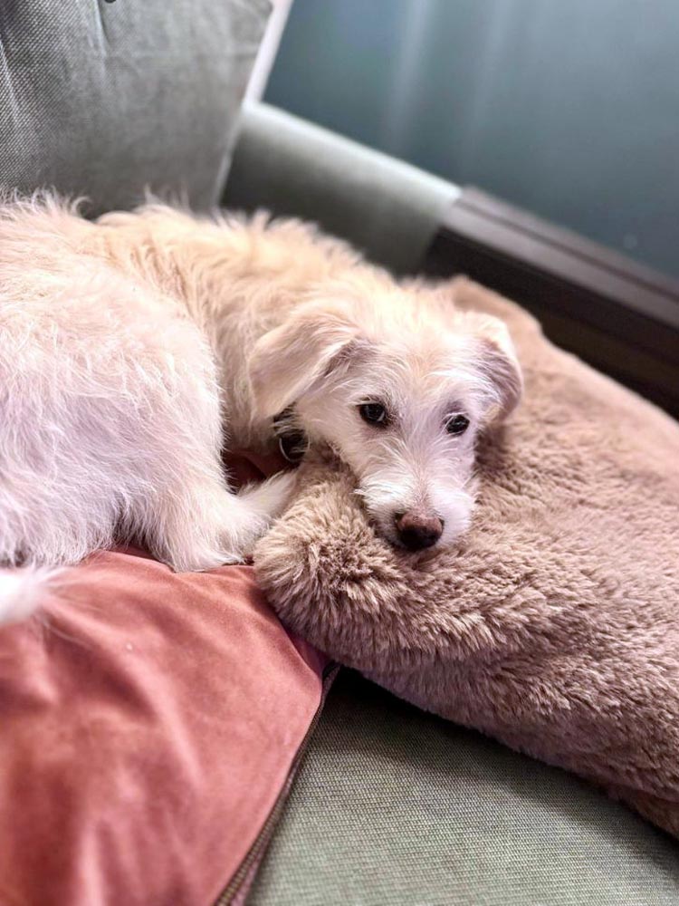 - Voorwaarde: We plaatsen Rolien alleen in een thuis waar al een hond(je) aanwezig is, die voor haar een (steun)maatje en een goed voorbeeld kan zijn.