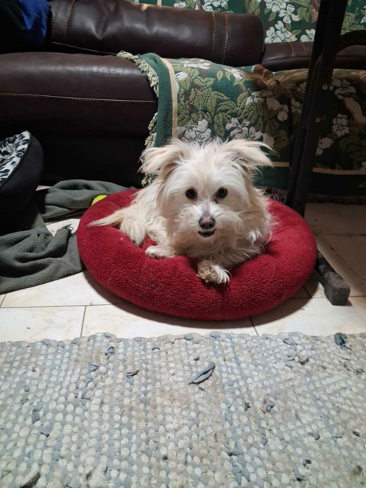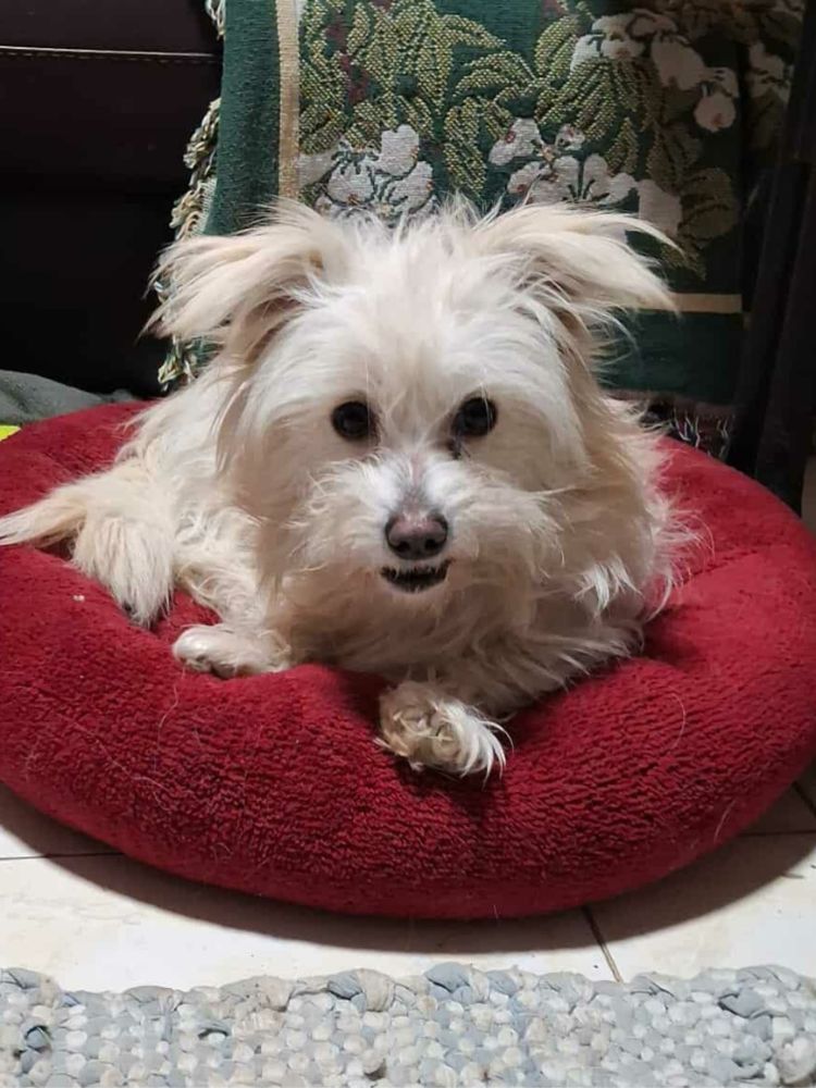 Rosa is een Boomer hondje, waarschijnlijk een kruising Maltezer.