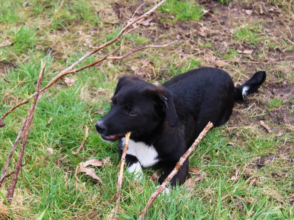 Kleine Shaggy is in Nederland verder gegaan zoals we hem in Roemenië al leerden kennen: blij, energiek en genietend van aandacht. Hij geniet van samen spelen en van gekroeld worden maar kan zichzelf ook prima vermaken; liefst met de andere honden. Hij is nog wel wat ongeremd in zijn spel met de andere honden; niet vreemd voor een pup natuurlijk. Daarom plaatsen we hem niet bij een kwetsbare of oudere hond als maatje, tenzij er ook jongere, speelse honden aanwezig zijn.