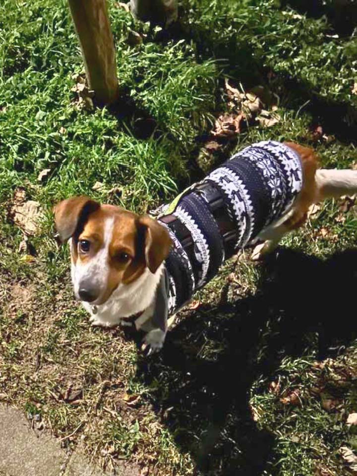 Formaat: kleine hond, schofthoogte 32cm, gewicht ongeveer 9,5 kilo