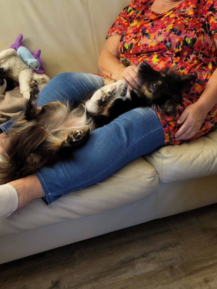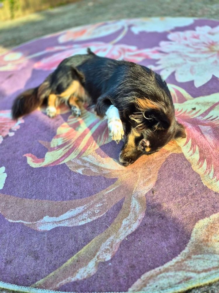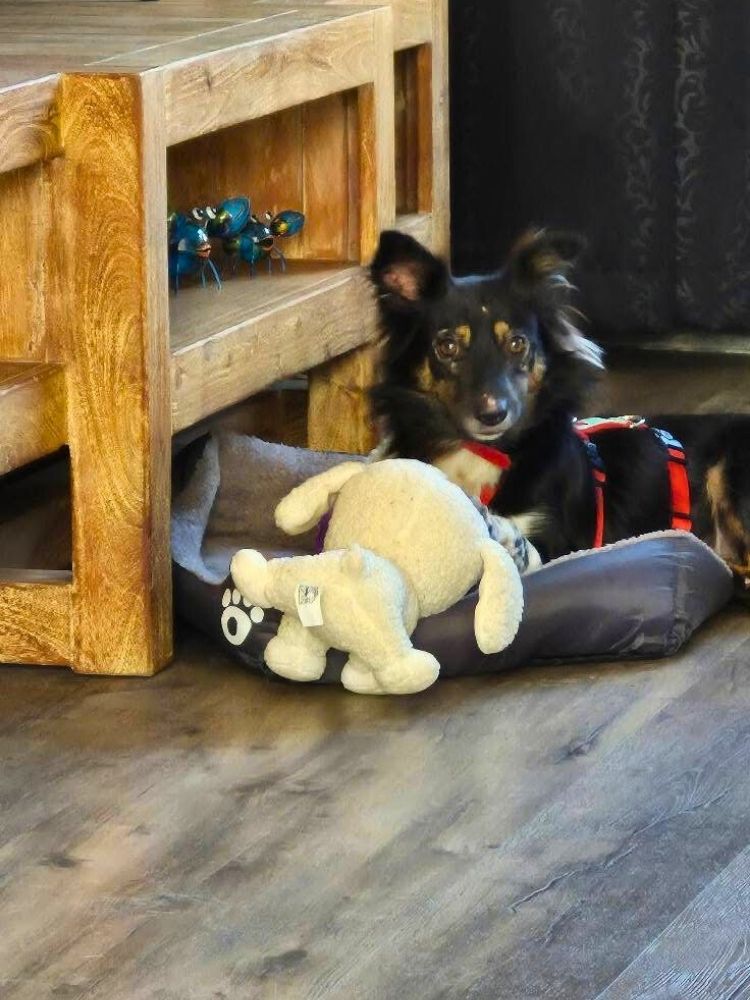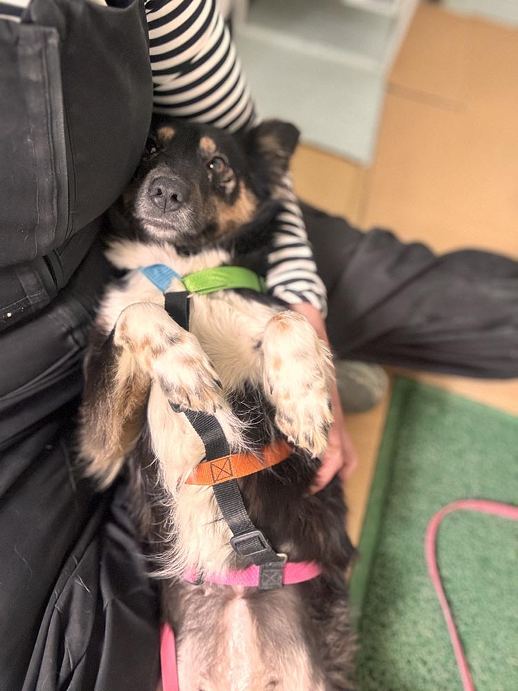 Binnenshuis kan ze er echter enorm van genieten om gekriebeld te worden, daar geeft ze zich dan helemaal aan over. Ze heeft soms de tijd nodig om wat te ontdooien, nieuwe situaties vindt ze soms nog wat spannend.