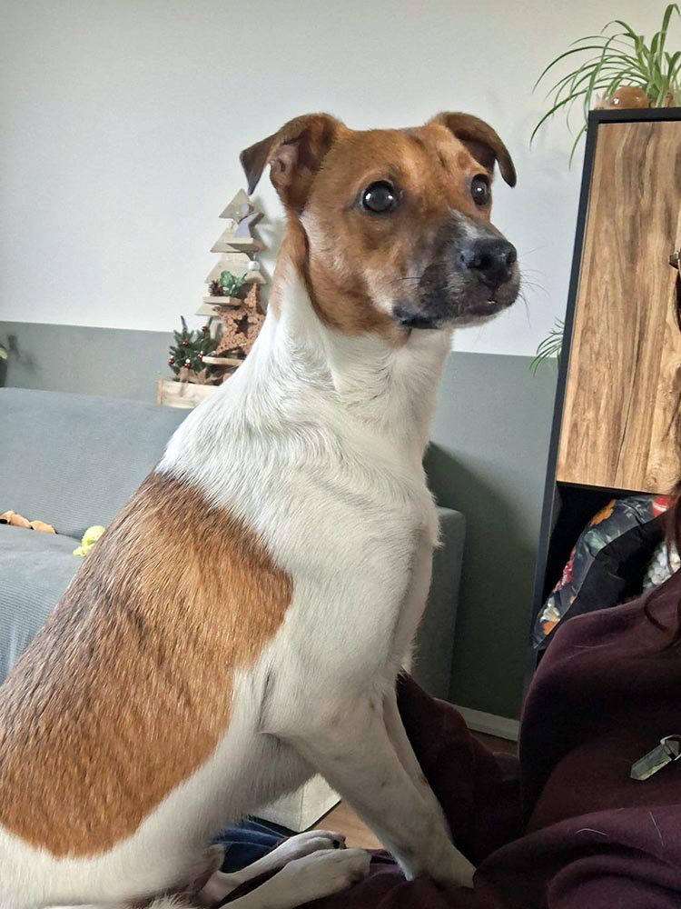 Truffle is speels en energiek, zonder een echte druktemaker te zijn. Wanneer hij voldoende beweging en mentale uitdaging heeft gehad, kan hij genieten van lekker slapen, het liefst bij jou op de bank. Zijn gastgezin heeft een relatief rustig huishouden en dat is fijn voor Truffle. In een gezin met kleine kinderen en/of veel aanloop zou Truffle waarschijnlijk snel overprikkeld raken; tot voor kort was een asielkennel op het Roemeense platteland het enige dat hij kende.