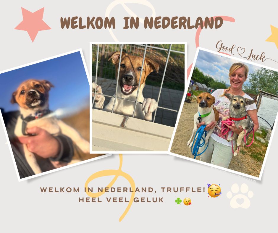 Na bijna een jaar lang in het asiel gewacht te hebben mocht Truffle op 7 november gelukkig alsnog de reis naar Nederland maken. Hij verblijft in een opvanggezin in Sleeuwijk (Noord-Brabant.