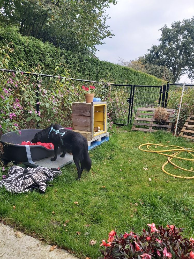 - Een goed omheinde tuin, zodat Vernon ook op eigen terrein lekker buiten kan zijn. Daar geniet hij van! Bovendien is Vernon de eerste weken nog niet toe aan wandelen, hij heeft voorlopig tijd nodig om in huis en tuin te wennen;