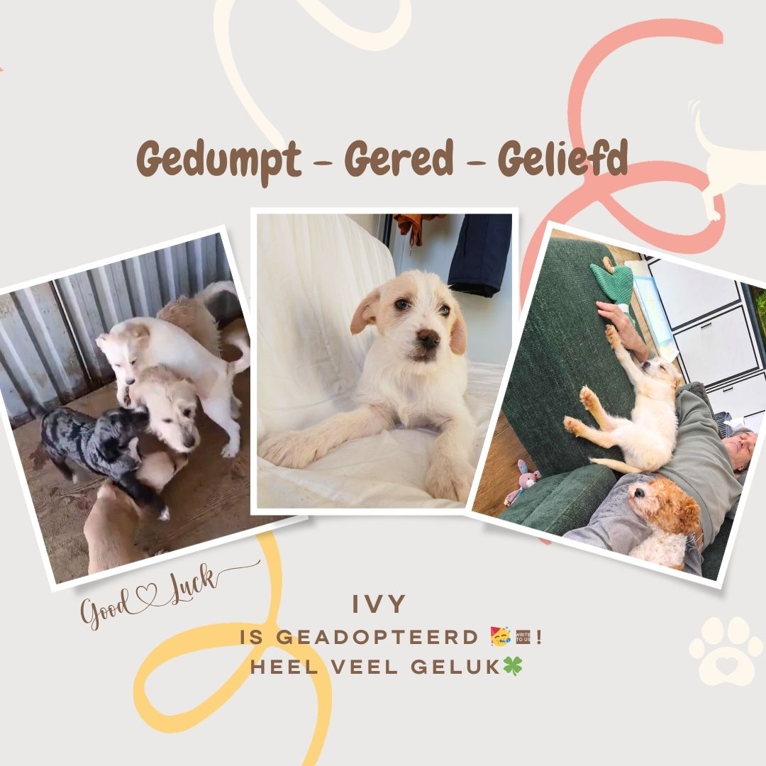Medio januari 2026 gaat een aantal van onze teamleden opnieuw een week lang op bezoek bij Elisa's asiel in Roemenië, waarmee we nauw samenwerken. Dan zullen we puppy Ivy persoonlijk leren kennen. Alleen de pups en volwassen honden waarvan we verwachten dat ze gelukkig zullen worden in Nederland - en hun adoptanten met de hond - worden door ons bemiddeld. Ivy hoort daar zeker bij!