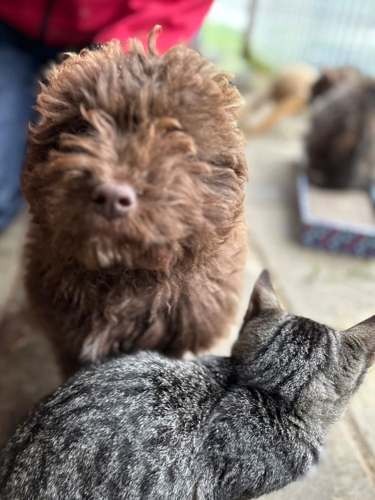 Ondanks deze slechte start is Maro een vrolijk, ondernemend pupje. Hij laat zich makkelijk oppakken en aanhalen en geniet van aandacht. Momenteel verblijft hij in de kattenkennel en met hen kan hij prima samen leven. Ook andere honden zijn geen probleem voor deze leuke knul. Al met al nog een heerlijk vrije, blije pup, die alles in huis heeft om een maatje voor het leven te worden.
