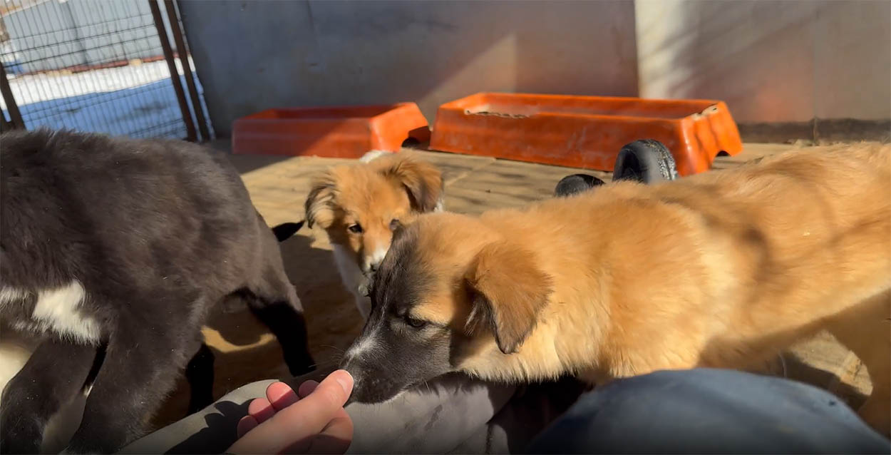 Tijdens ons asielbezoek waren de pups van Annie in eerste instantie afwachtend. Ze hebben veel aandacht gekregen en dat had resultaat: elke dag werden de pups is een stukje zelfverzekerder in het contact.