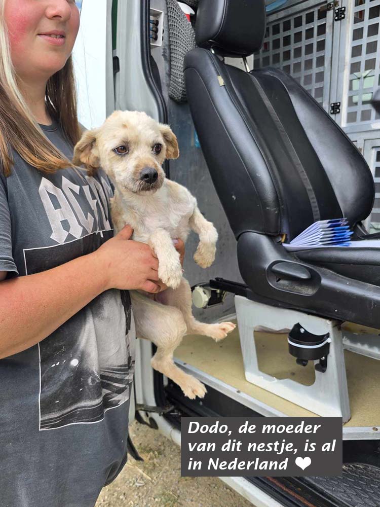 In mei en in juni 2025 zijn enkele van onze teamleden een week lang op bezoek geweest bij het asiel van Elisa in Roemenië, waarmee we nauw samenwerken. Ze hebben heel veel pups en enkele volwassen hondjes leren kennen, door bij ze in de kennel te zitten, te spelen, te knuffelen en met ze te wandelen of ze op het speelveld los te laten. Alleen de honden waarvan we verwachten dat ze gelukkig zullen worden in Nederland - en hun adoptanten met de hond - worden door ons bemiddeld.