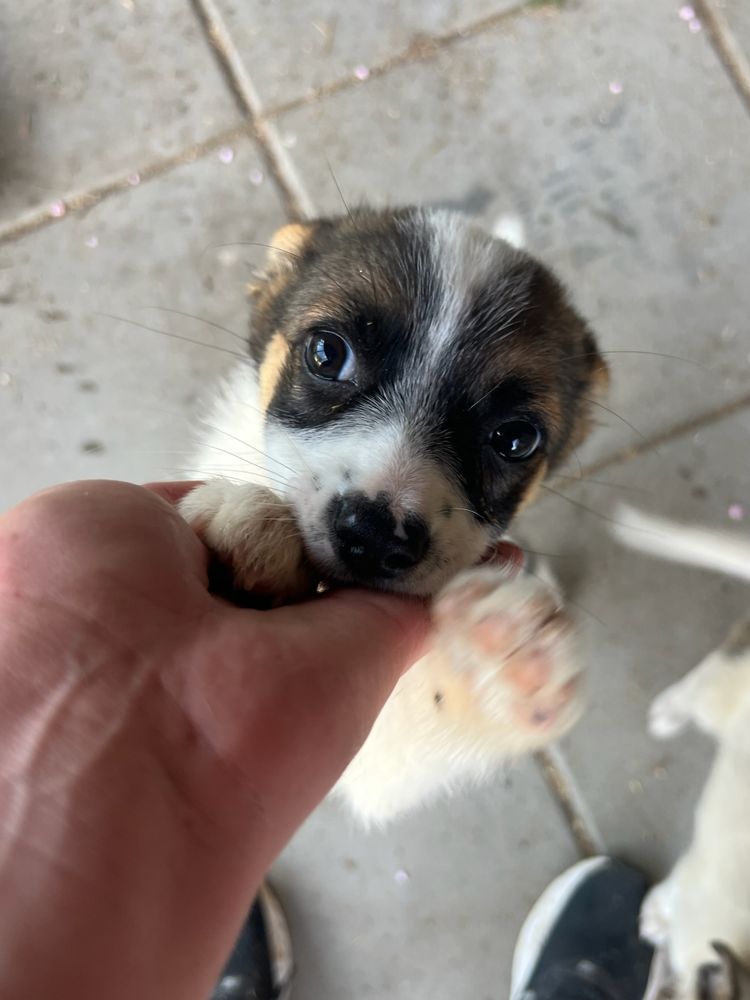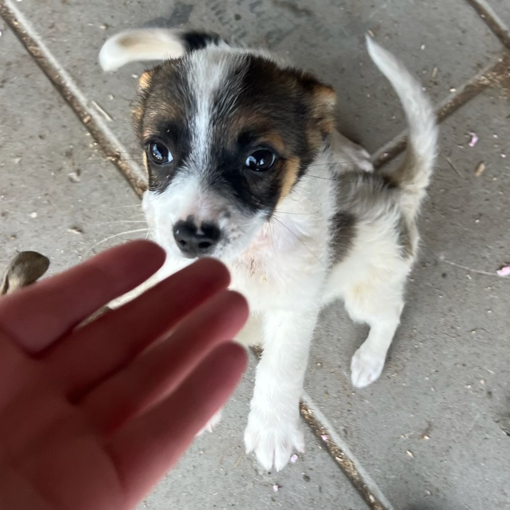 We verwachten dat ze een kleine hond zal blijven, of hooguit een keine middenmaat. Ze is zonder ouderdieren gevonden, dus welke rassen er in haar (voor)ouders vertegenwoordigd zijn, is onbekend. Daardoor blijft de volwassen grootte een schatting.