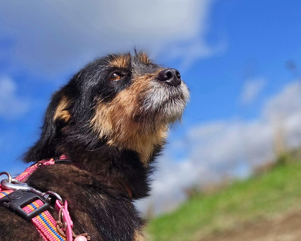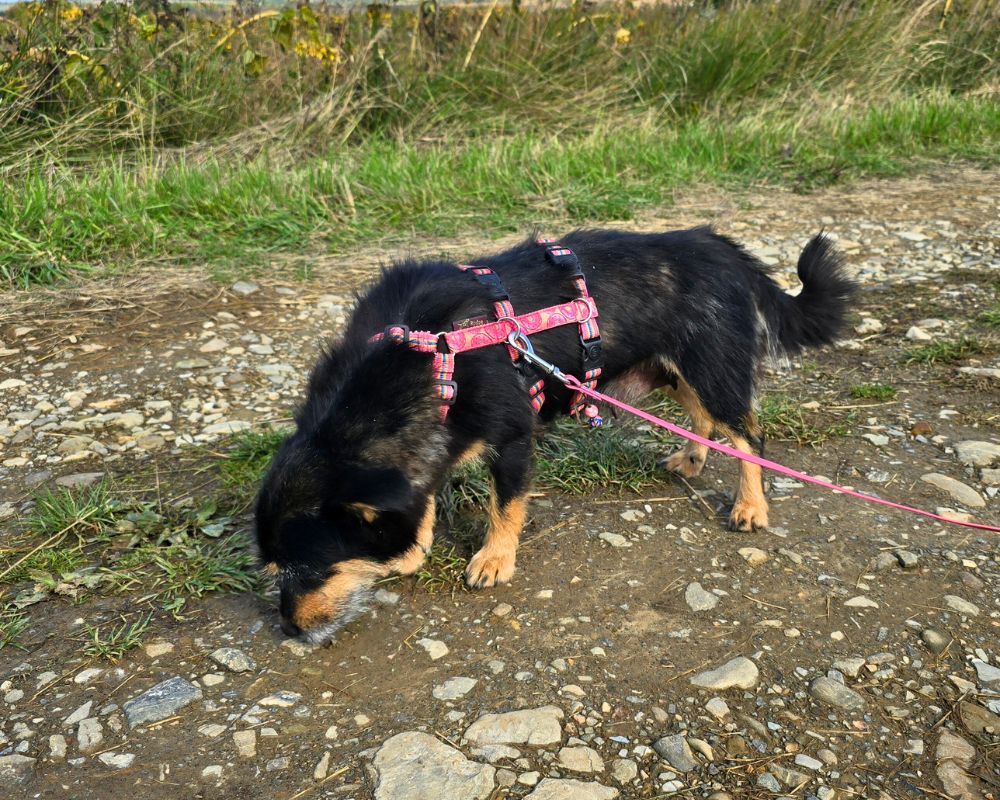 Daar hebben ze Jade leren kennen en wat lieve, aanhankelijke dame is ze! Ze is niet opdringerig, soms een tikje stoïcijns, maar ook erg voergericht en wandelt al heel goed mee. Ze is dol op snuffelen en geurtjes, we denken dan ook dat ze in de toekomst erg van speuren zou houden.
